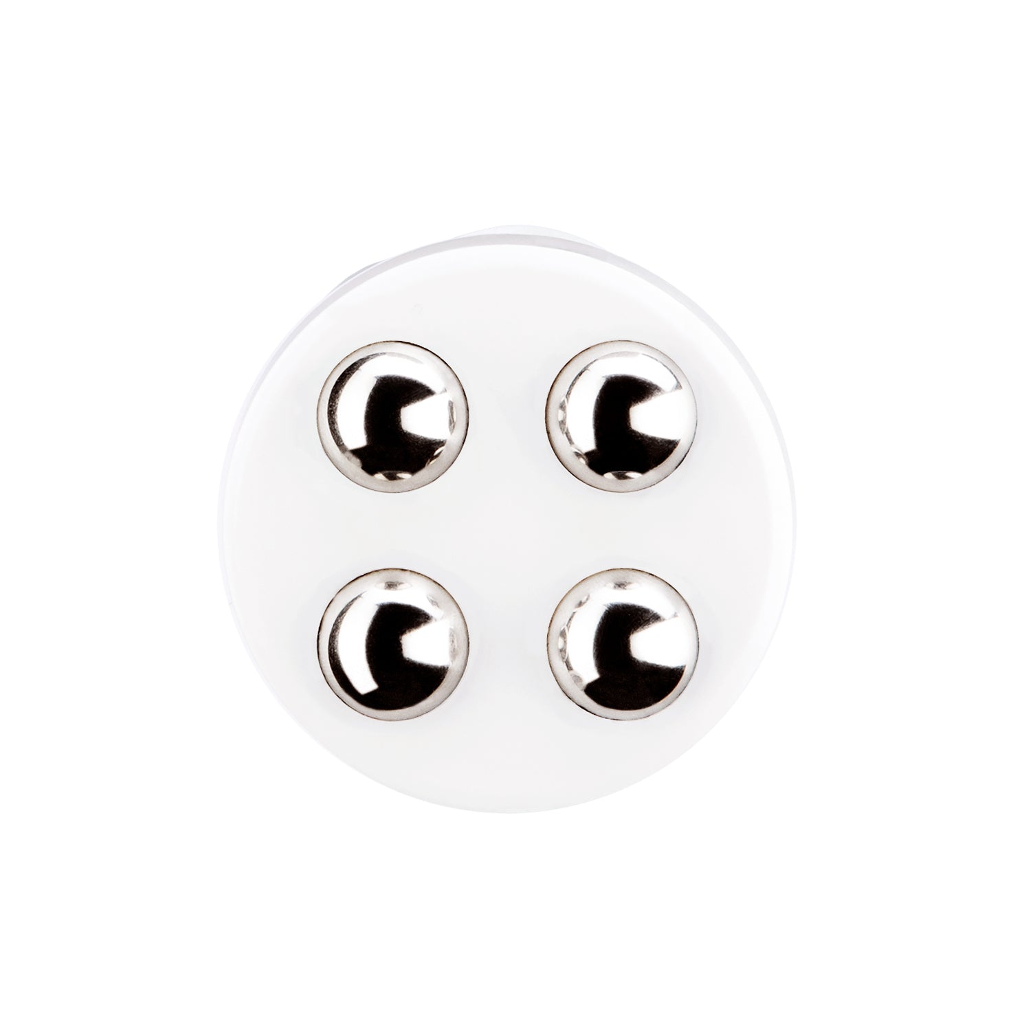Kinetic Smooth Massaging Head stimulates the skin for better absorption of serums and lotions while improving the appearance of puffiness and dark circles under the eye.