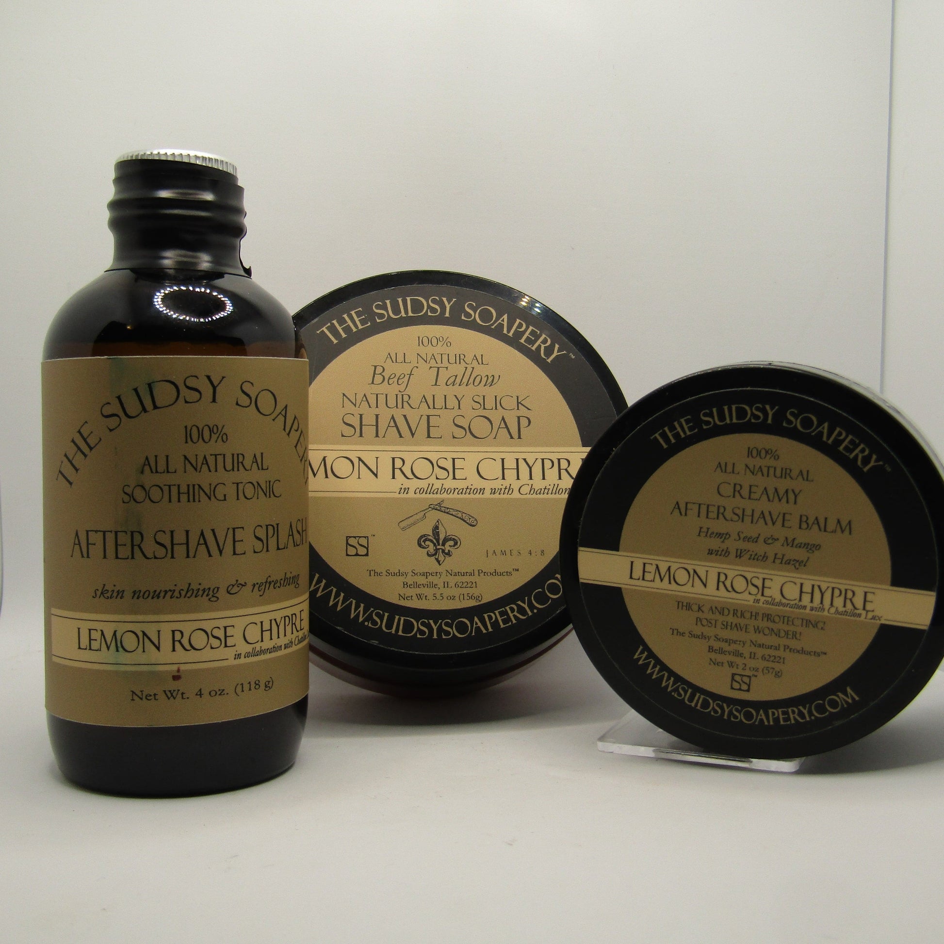 Lemon Rose Chypre (Tallow) Shaving Soap, Splash, and Balm - by Sudsy Soapery & Chatillon Lux (Pre-Owned)