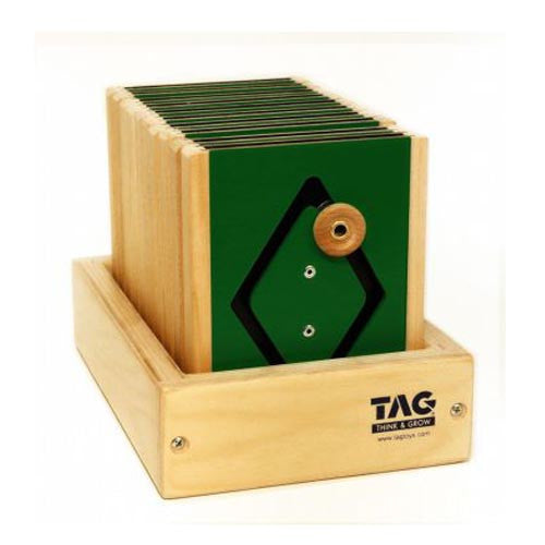 This series of motor shapes provides visual, tactile and kinesthetic experiences required to learn how to print and draw. The button moves smoothly along the path of the shape allowing the child to perform the movement and visually track the path of the movement. This original design has been used in regular classrooms for over 20 years and has proven to be especially helpful to very young children and special needs children with motor deficits. By placing the index finger of the writing hand on the eye of the grommet, the child can easily follow along the path of the shape. <br><br>