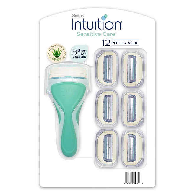 About Schick Intuition Sensitive Care Razor Handle + 12 Cartridges